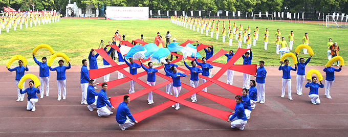 上午8時(shí)許,在雄壯的《運(yùn)動(dòng)員進(jìn)行曲》伴奏下,6名護(hù)旗手組成的國(guó)旗方隊(duì)和19支代表隊(duì)方隊(duì)先后接受大會(huì)檢閱,運(yùn)動(dòng)員們步伐整齊、精神抖擻、口號(hào)嘹亮、動(dòng)作新穎,充分展現(xiàn)了城投職工良好的精神風(fēng)貌,給大家留下了深刻印象……隨著公司董事長(zhǎng)金國(guó)發(fā)宣布本次賽會(huì)開幕,600名職工帶來(lái)了新編創(chuàng)作《我和我的祖國(guó)》、《咱們工人有力量》大型團(tuán)體操展示,伴隨著激昂的旋律,他們動(dòng)作整齊劃一、協(xié)調(diào)舒展,充分展現(xiàn)了城投職工愛(ài)黨愛(ài)國(guó)愛(ài)企業(yè)、團(tuán)結(jié)奮發(fā)的精神面貌。