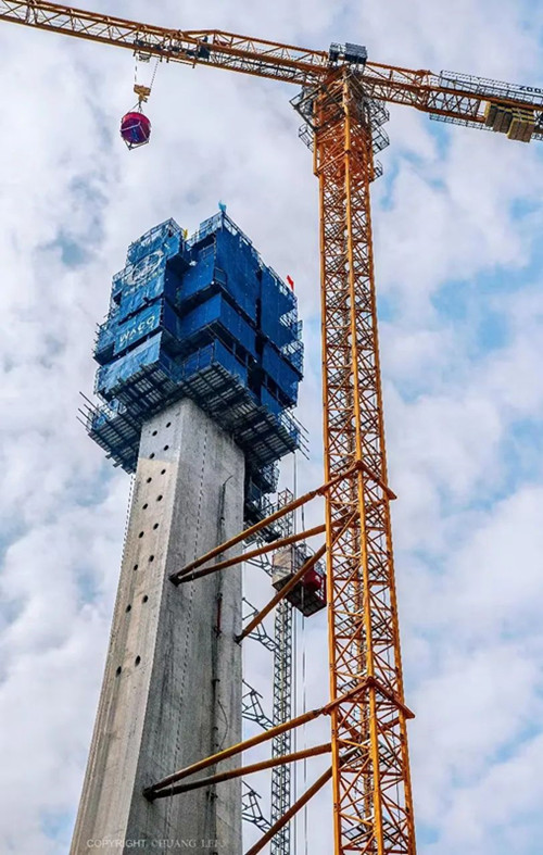 ▲主塔施工現(xiàn)場(chǎng) 攝影 黃蕾
