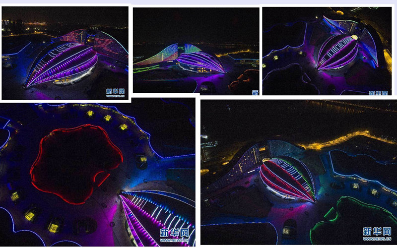 新華網(wǎng)2016年9月25日訊(記者熊琦攝)9月25日,“2016國家網(wǎng)絡(luò)安全宣傳周”將在湖北武漢城投國際博覽中心閉幕。9月23日夜晚的國博中心展館流光溢彩,廣迎八方來客。